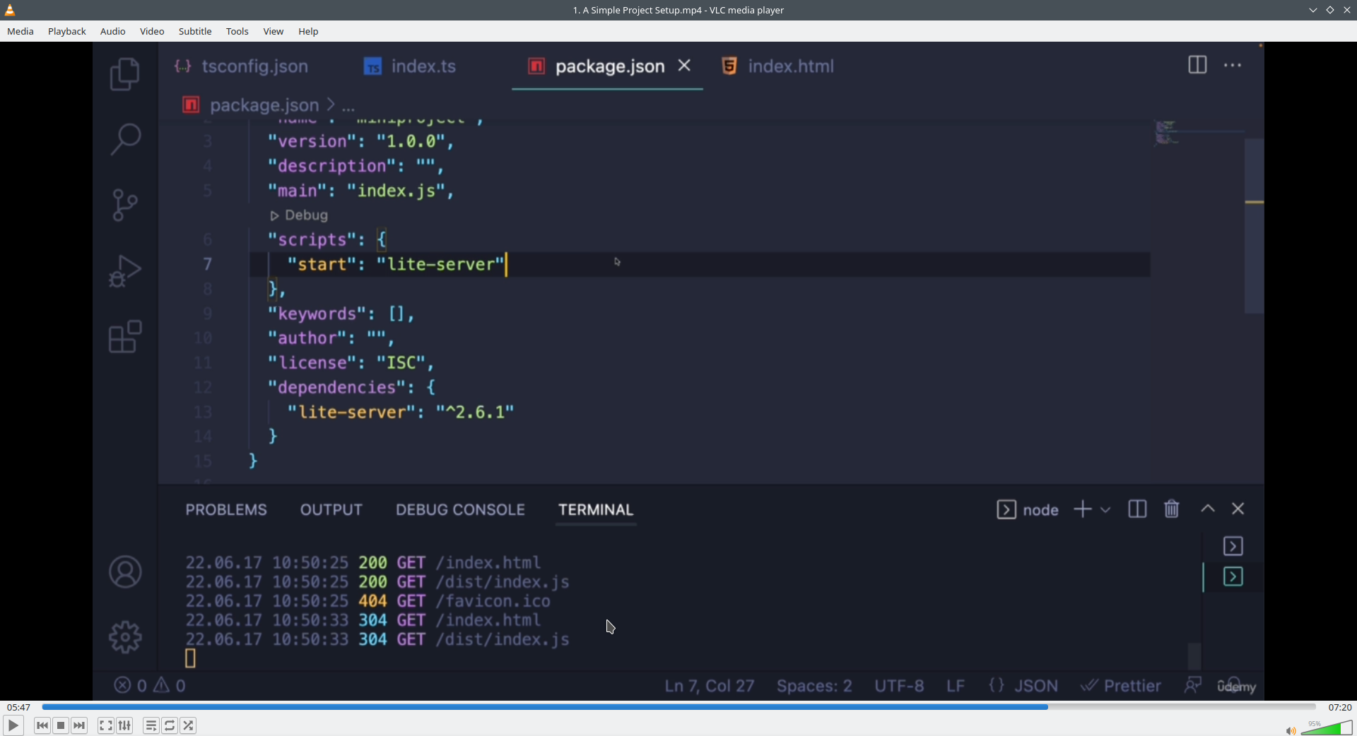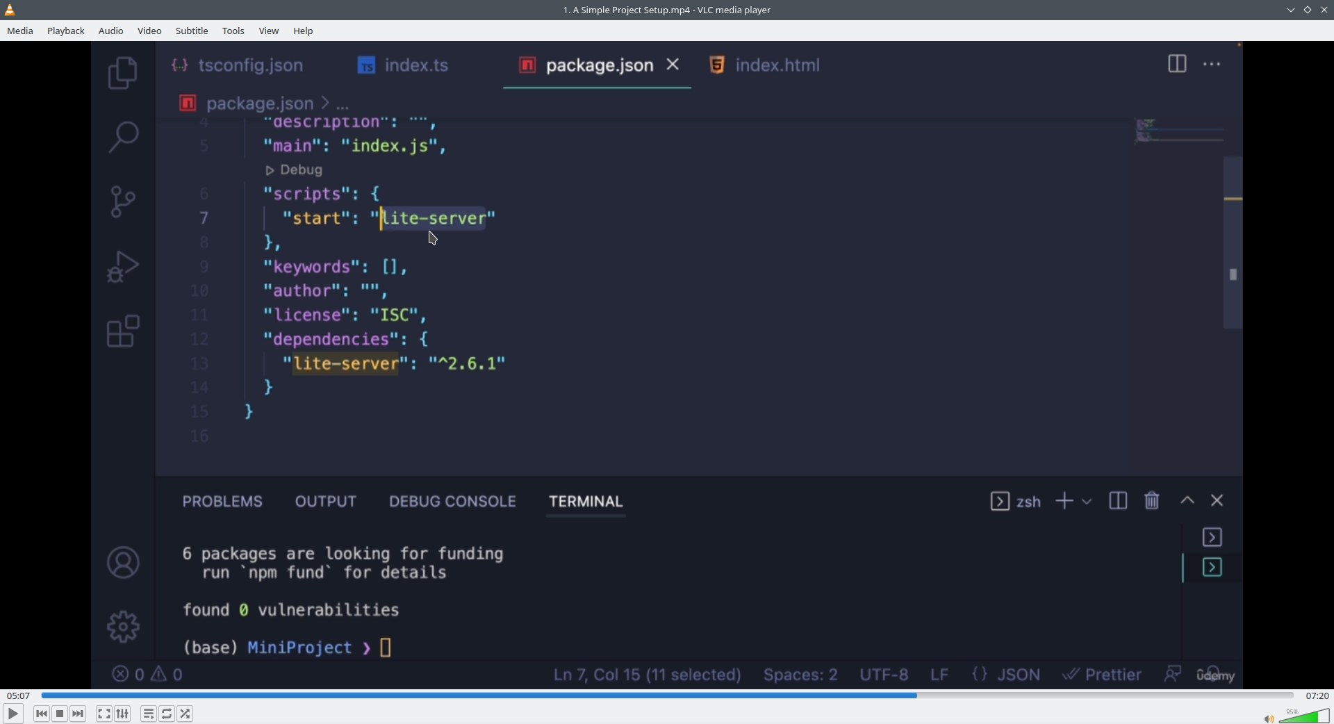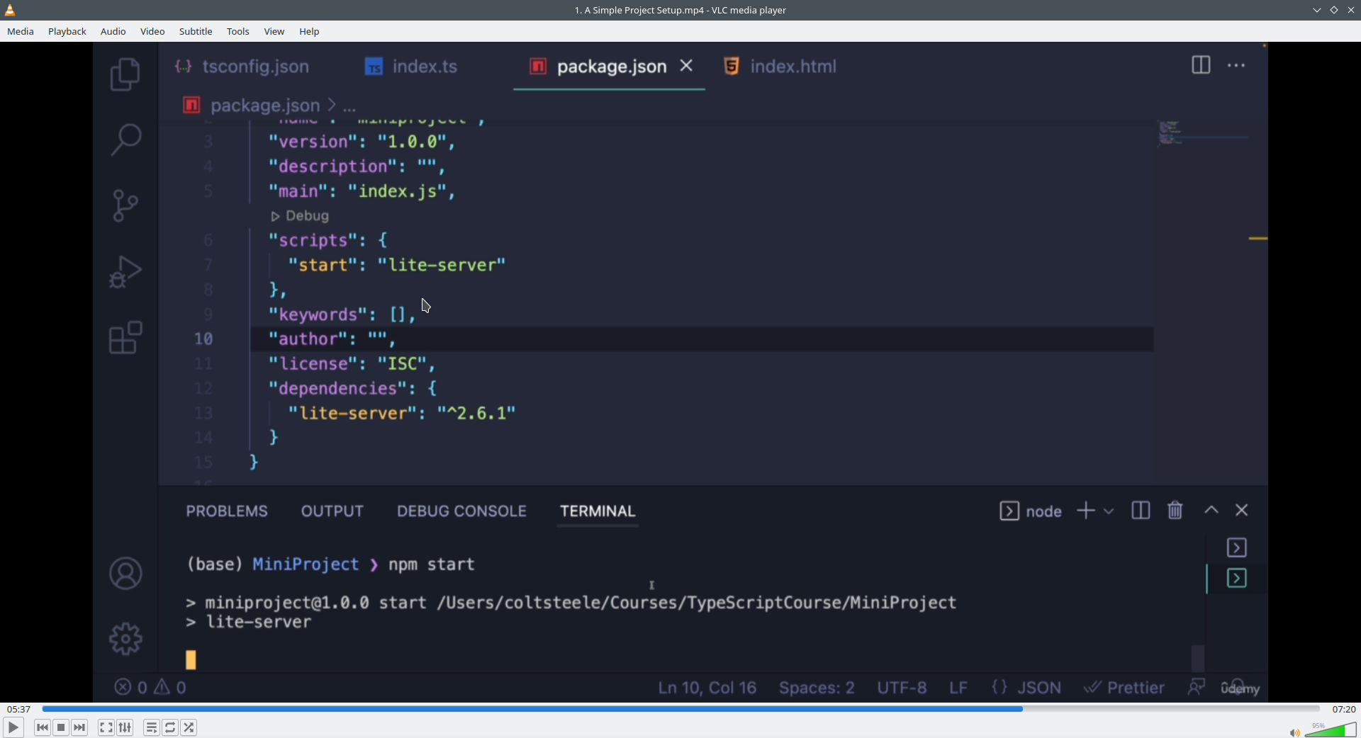 Tune script section on "package.json" - "npm start" now will start lite-server on current folder.