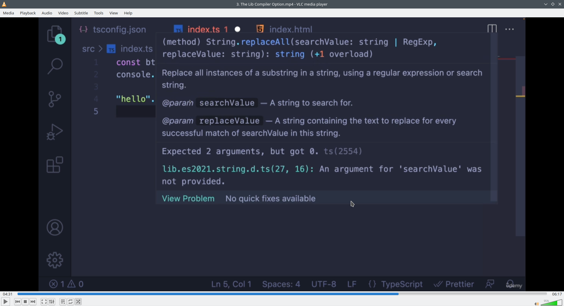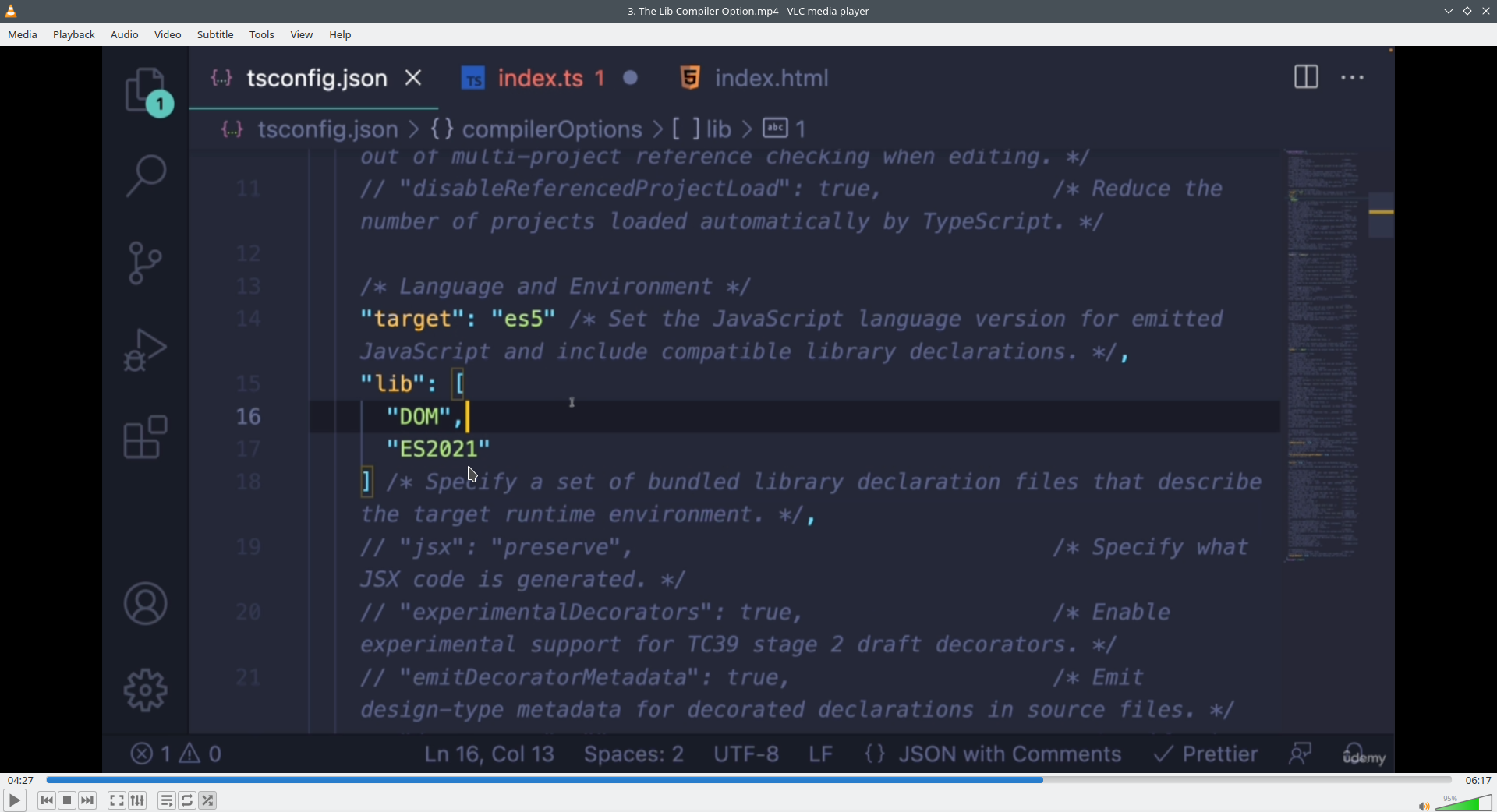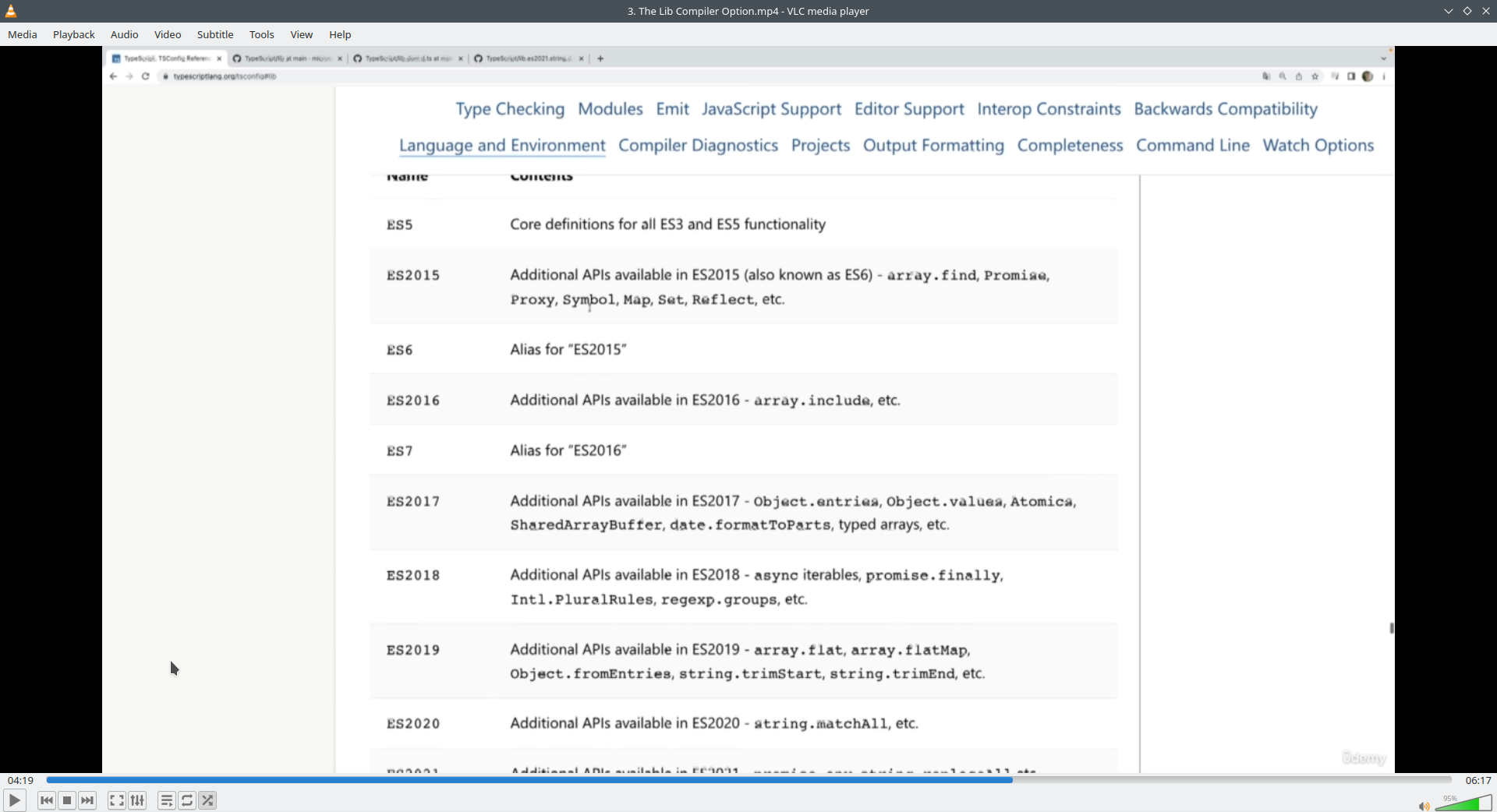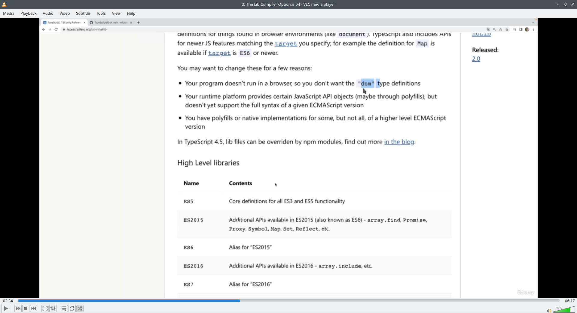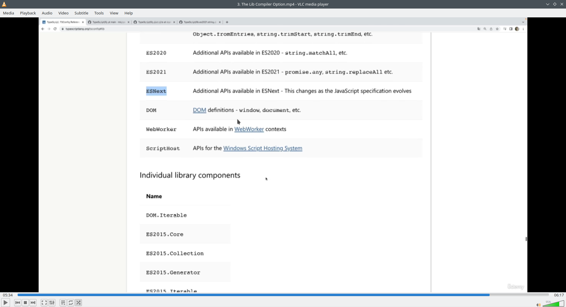 Because compiler used needed models from linked library, look list of linked library on https://www.typescriptlang.org/tsconfig#lib