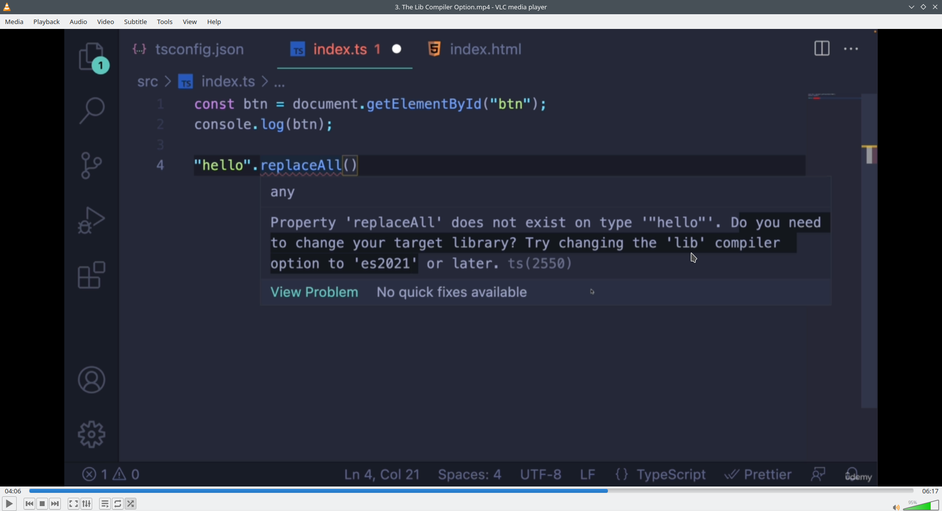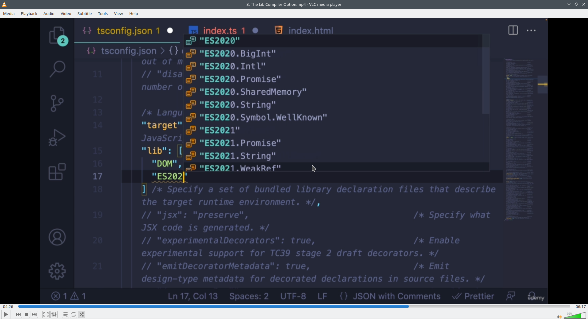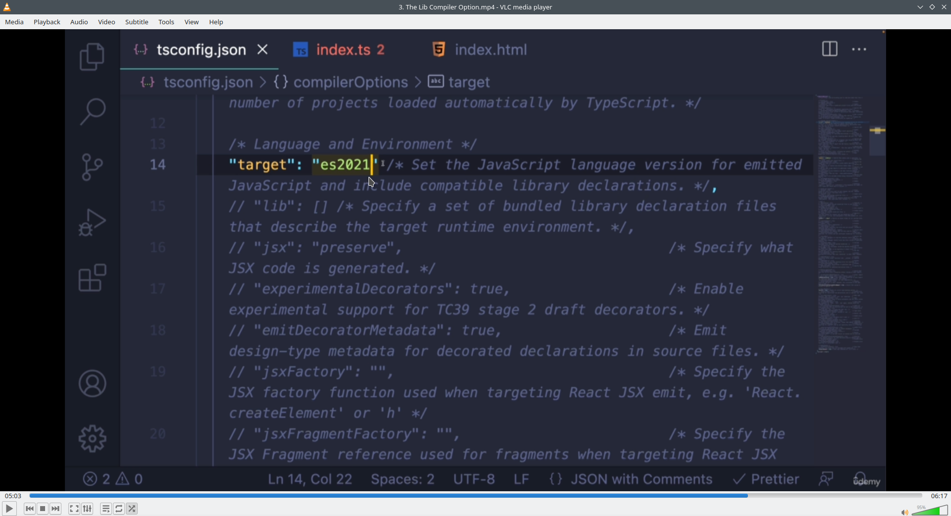 We also can change "target" Javascript version on Typescript compiler, in this case we select "2021" version.