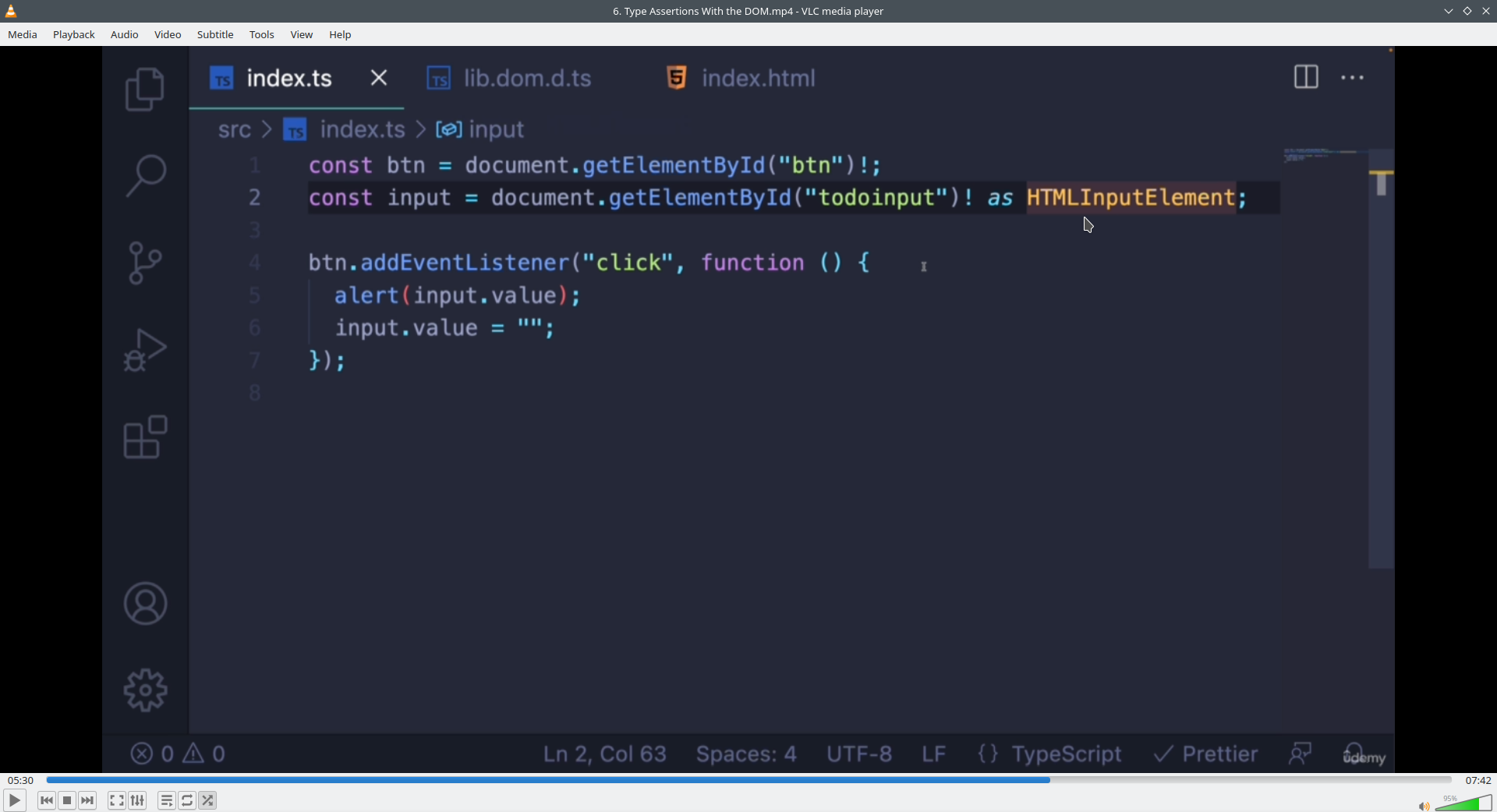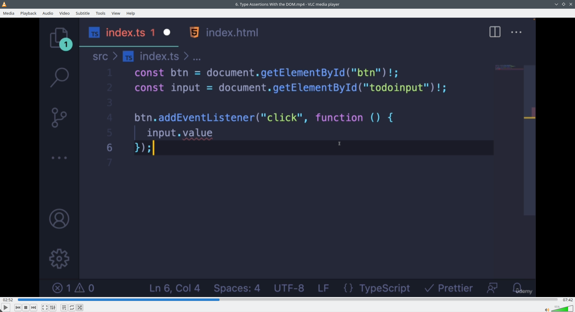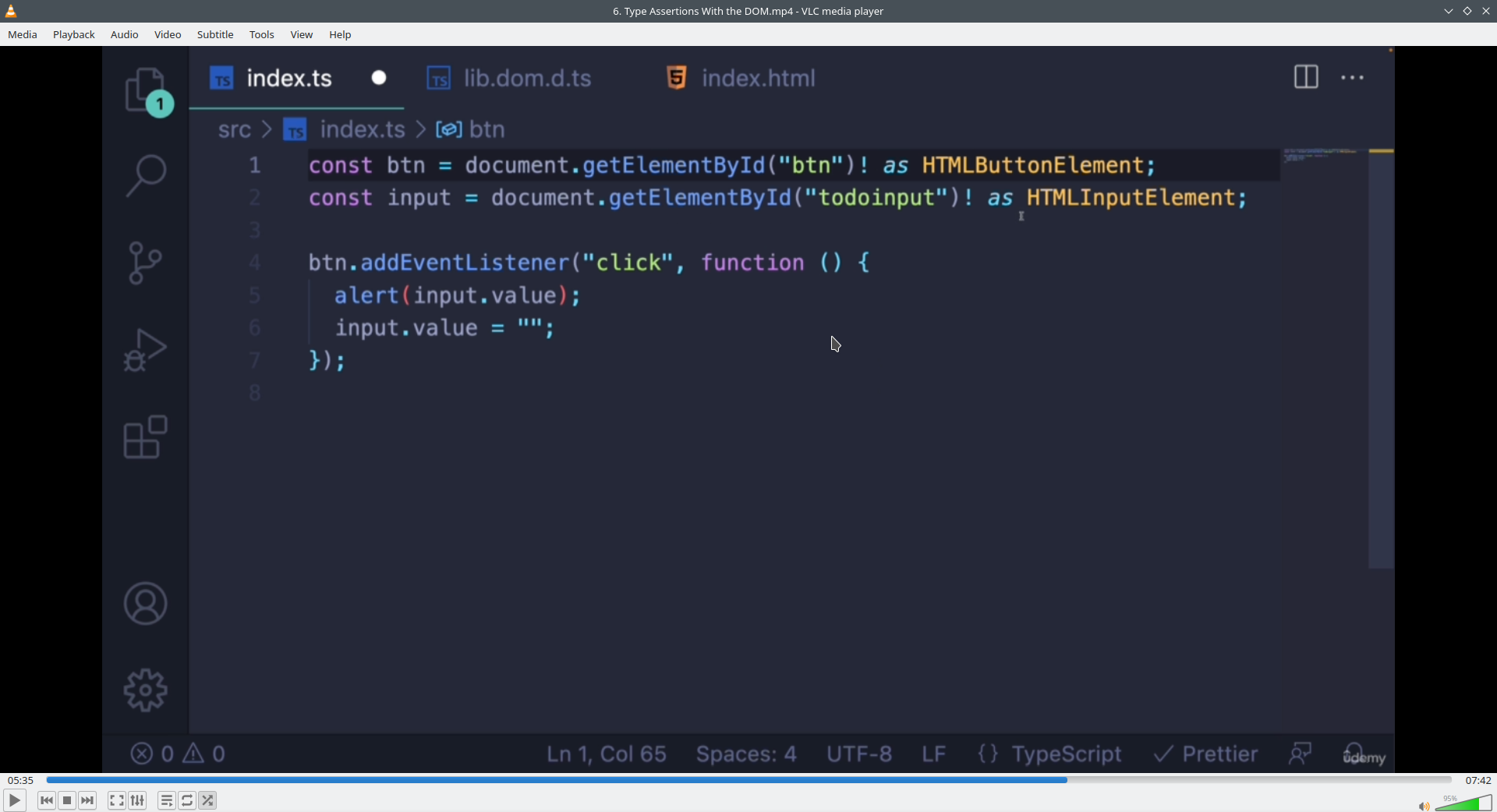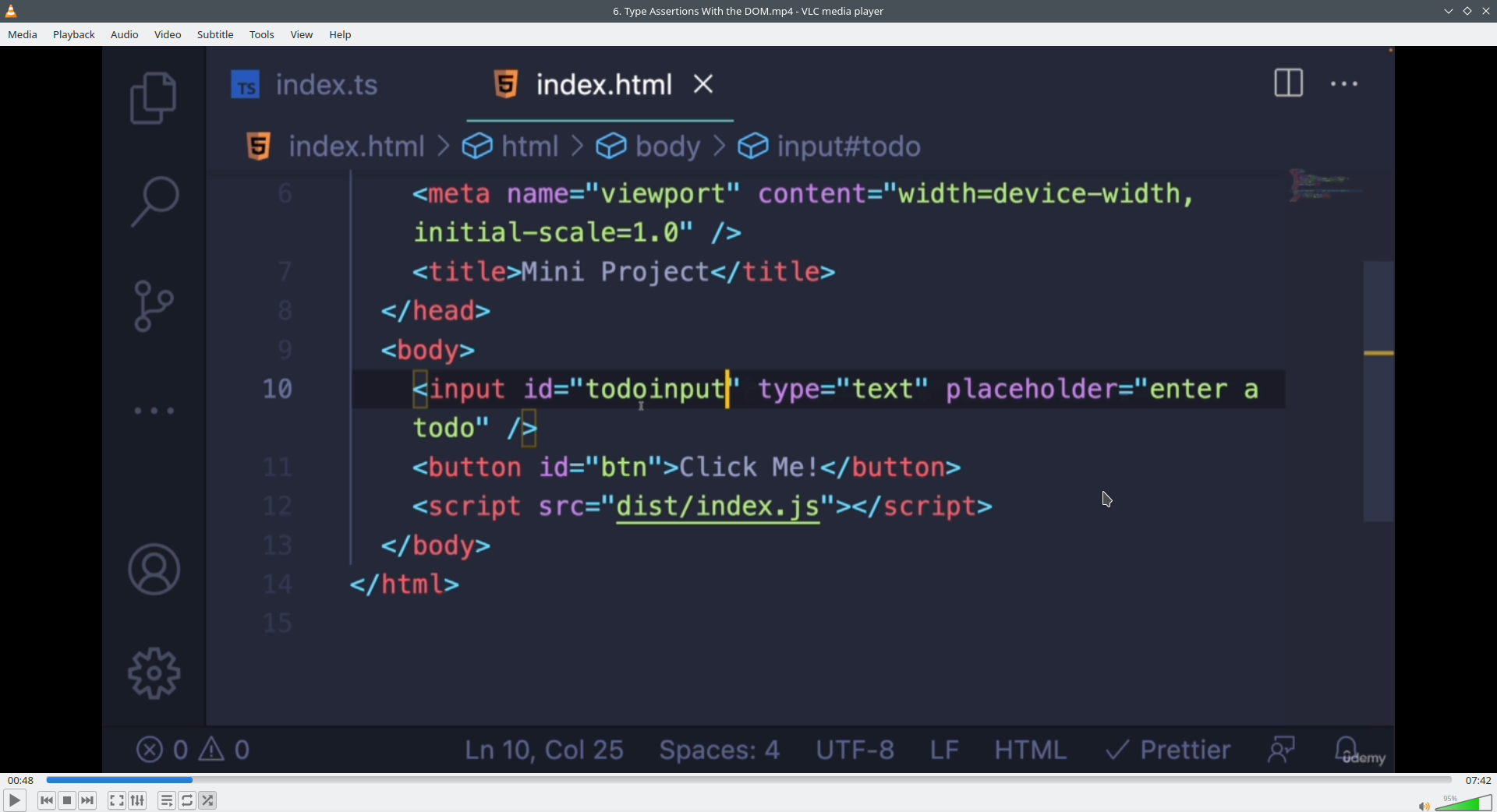 1. A Simple Project Setup.mp4 2. Working With The DOM.mp4 3. The Lib Compiler Option.mp4 4. TypeScript's Non-Null Assertion Operator.mp4 5. Type Assertions.mp4 6. Type Assertions With the DOM.mp4 7. Working With Events.mp4 8. Building The Todo List.mp4 9. Adding in an Interface.mp4 10. Connecting to LocalStorage.mp4 11. Todo List Finishing Touches.mp4