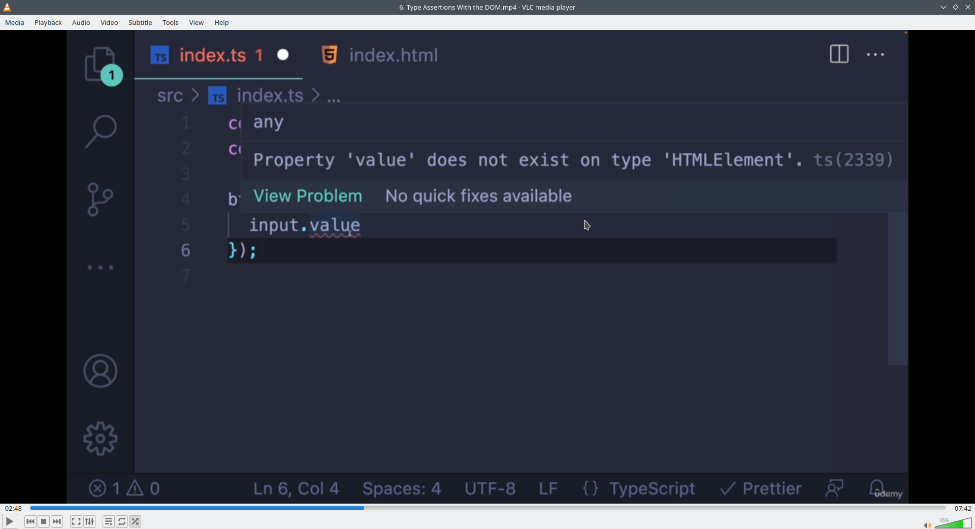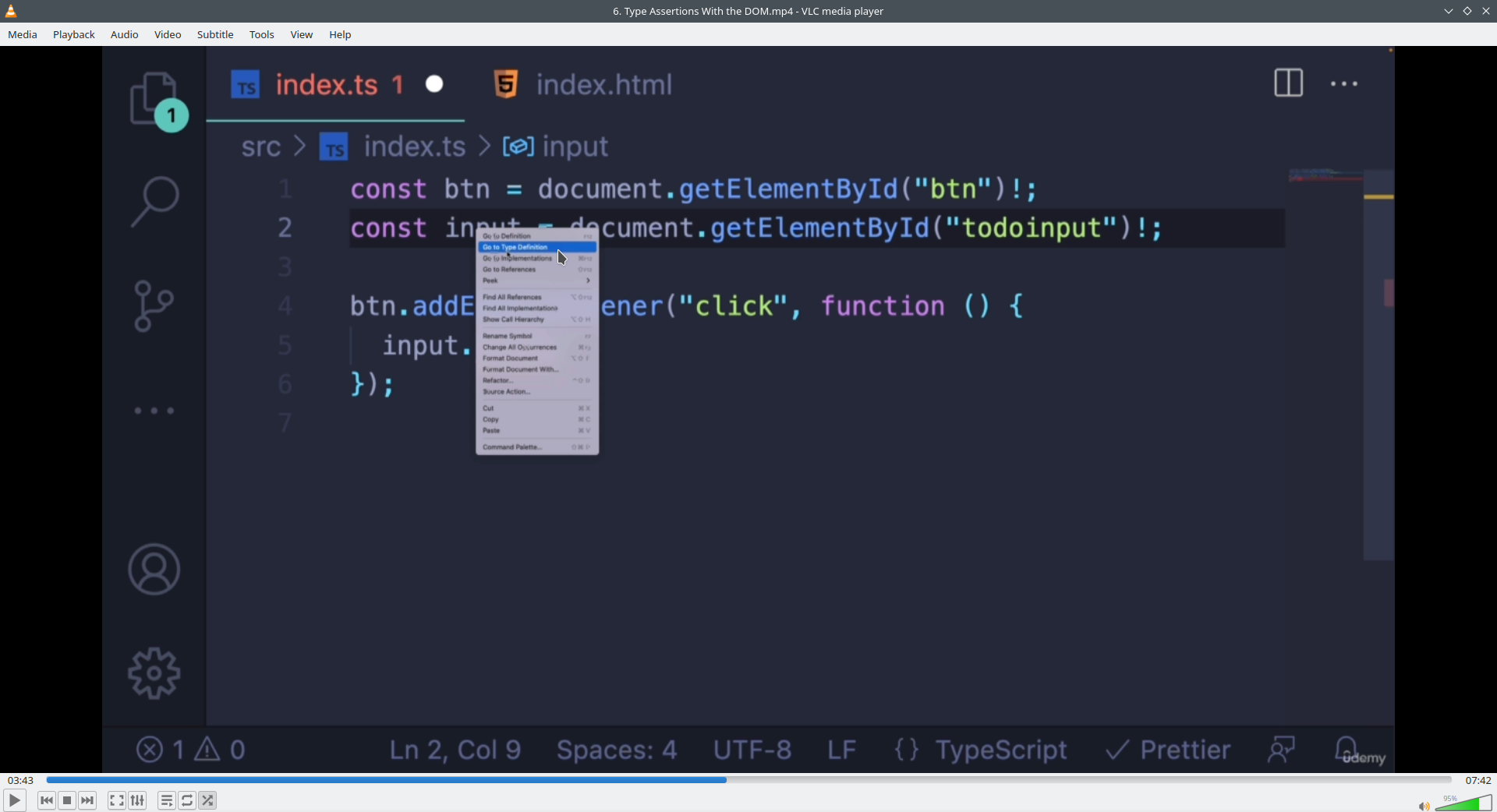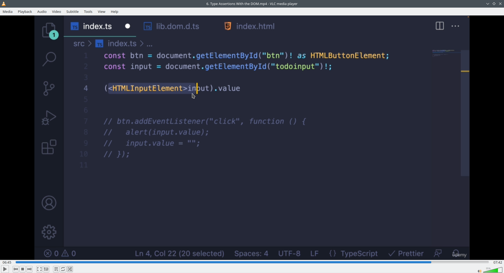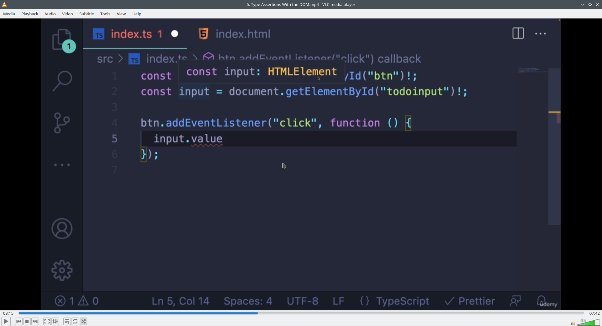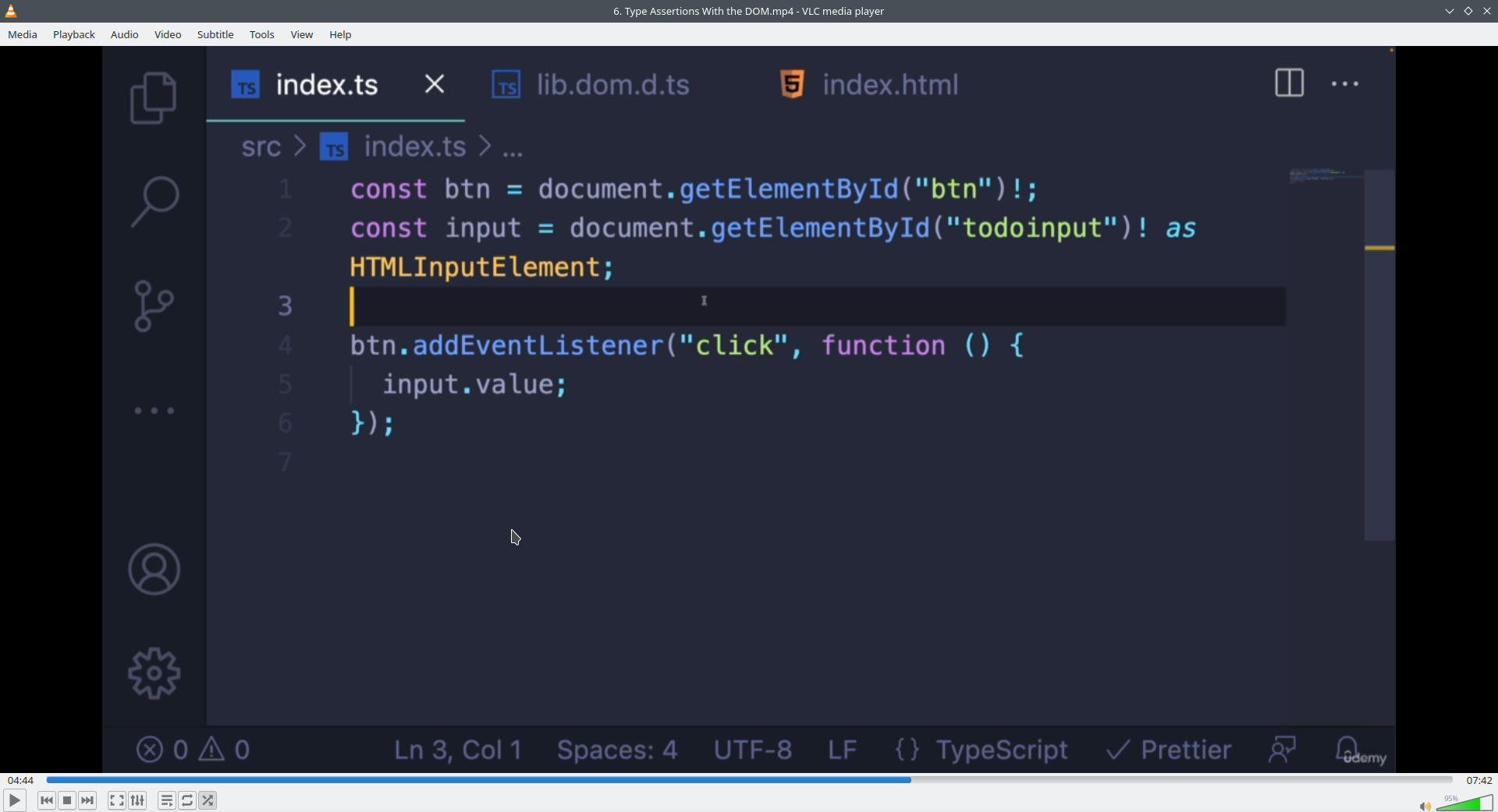 1. A Simple Project Setup.mp4 2. Working With The DOM.mp4 3. The Lib Compiler Option.mp4 4. TypeScript's Non-Null Assertion Operator.mp4 5. Type Assertions.mp4 6. Type Assertions With the DOM.mp4 7. Working With Events.mp4 8. Building The Todo List.mp4 9. Adding in an Interface.mp4 10. Connecting to LocalStorage.mp4 11. Todo List Finishing Touches.mp4