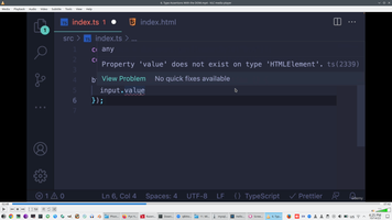 Button and string still has no specific value, to access all specific DOM value we need to use "Type assertion". Look to prototype on Browser, Check DOM and add type assertion "as".