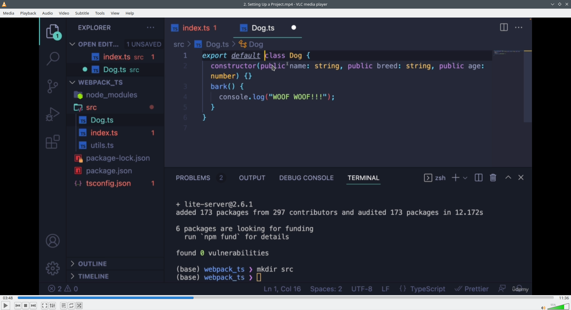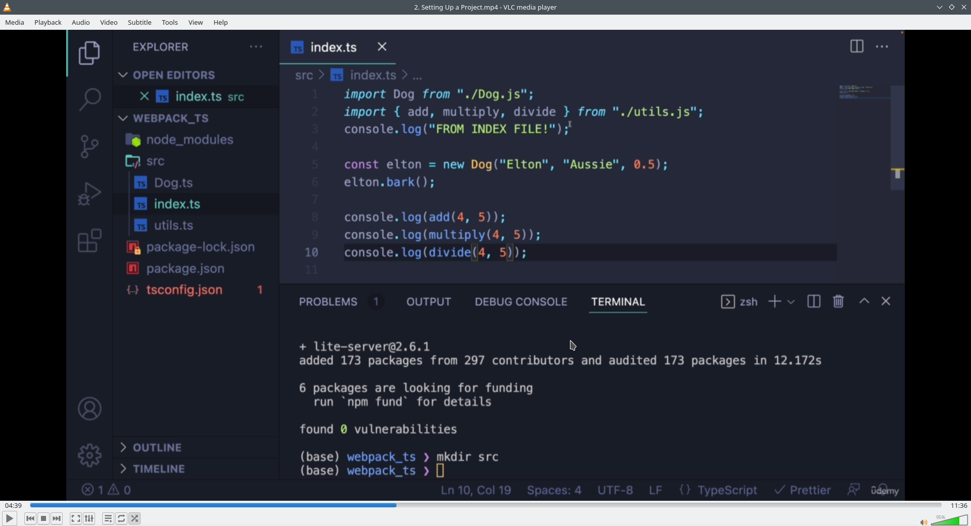 Create project with Index.ts, Utils.ts, Class.ts and import Utils and Class to Index.ts