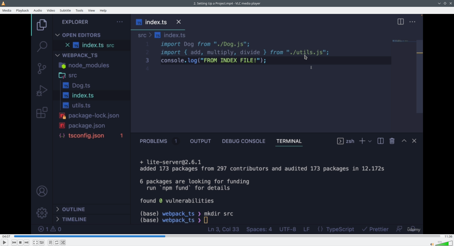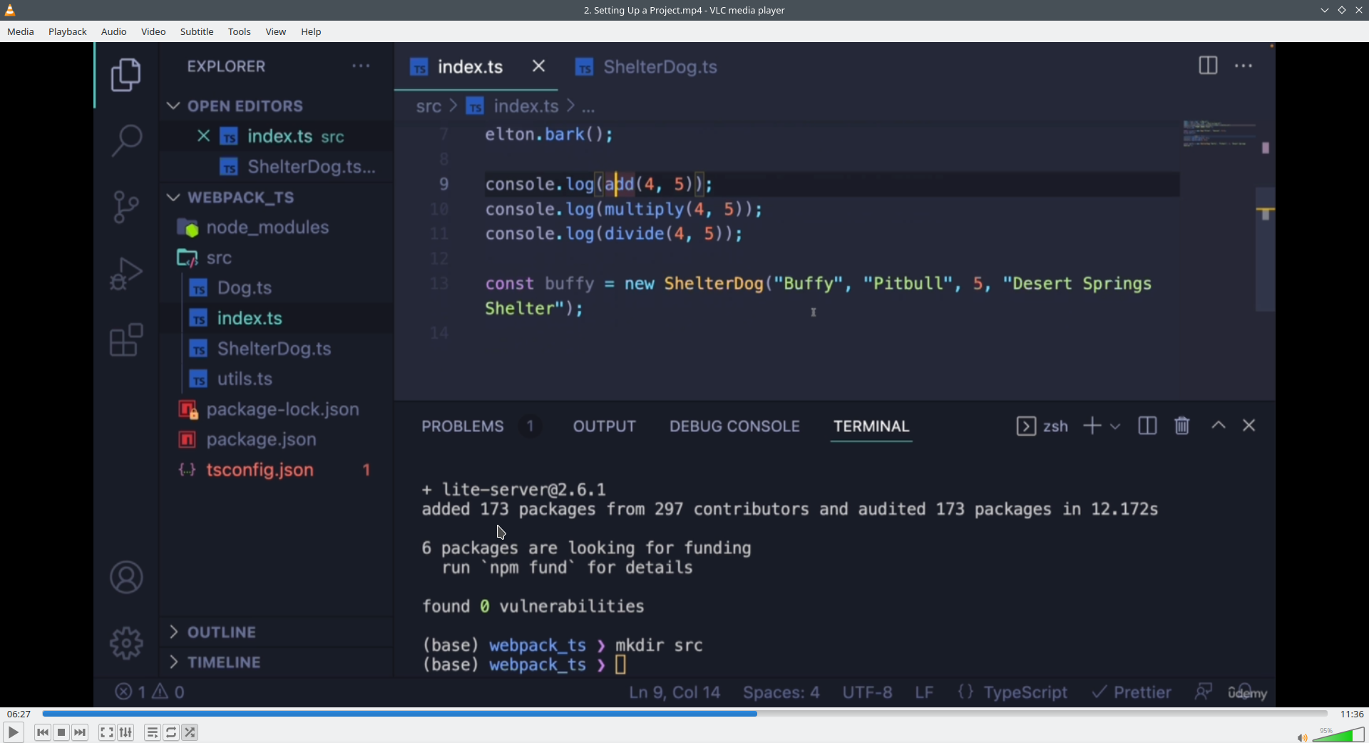 First start unsuccessful, because for Webpack we will working with *.TS files and we need update imports without extension.