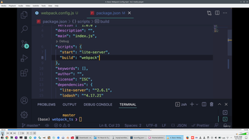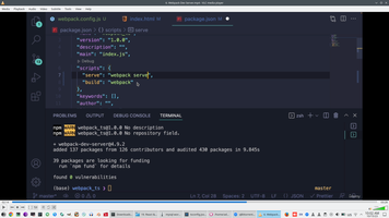 Next step is configure NPM command - "Start" will be working with Lite-server, "Build" will be working with Webpack server.