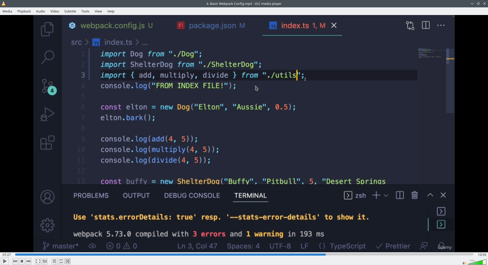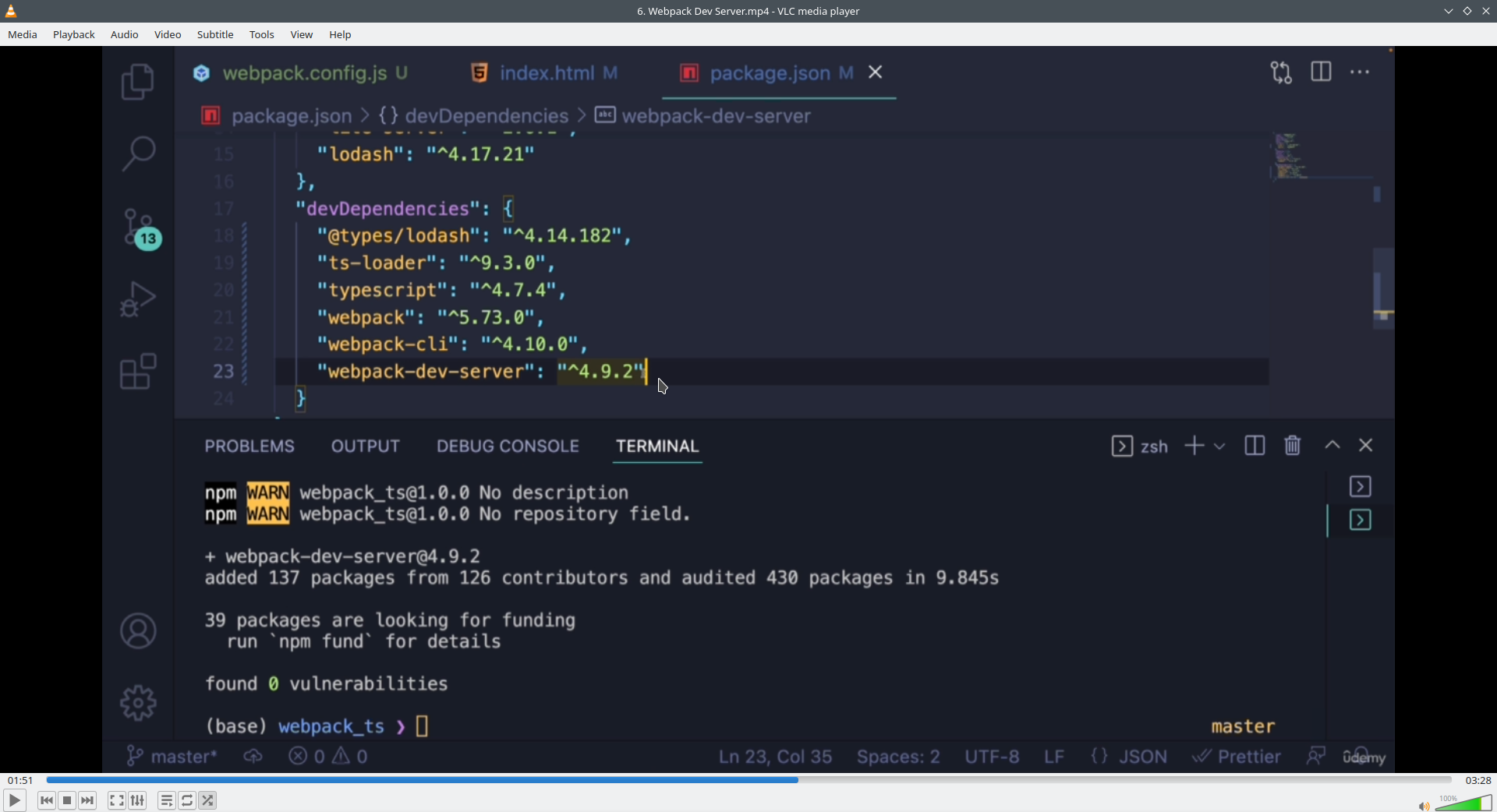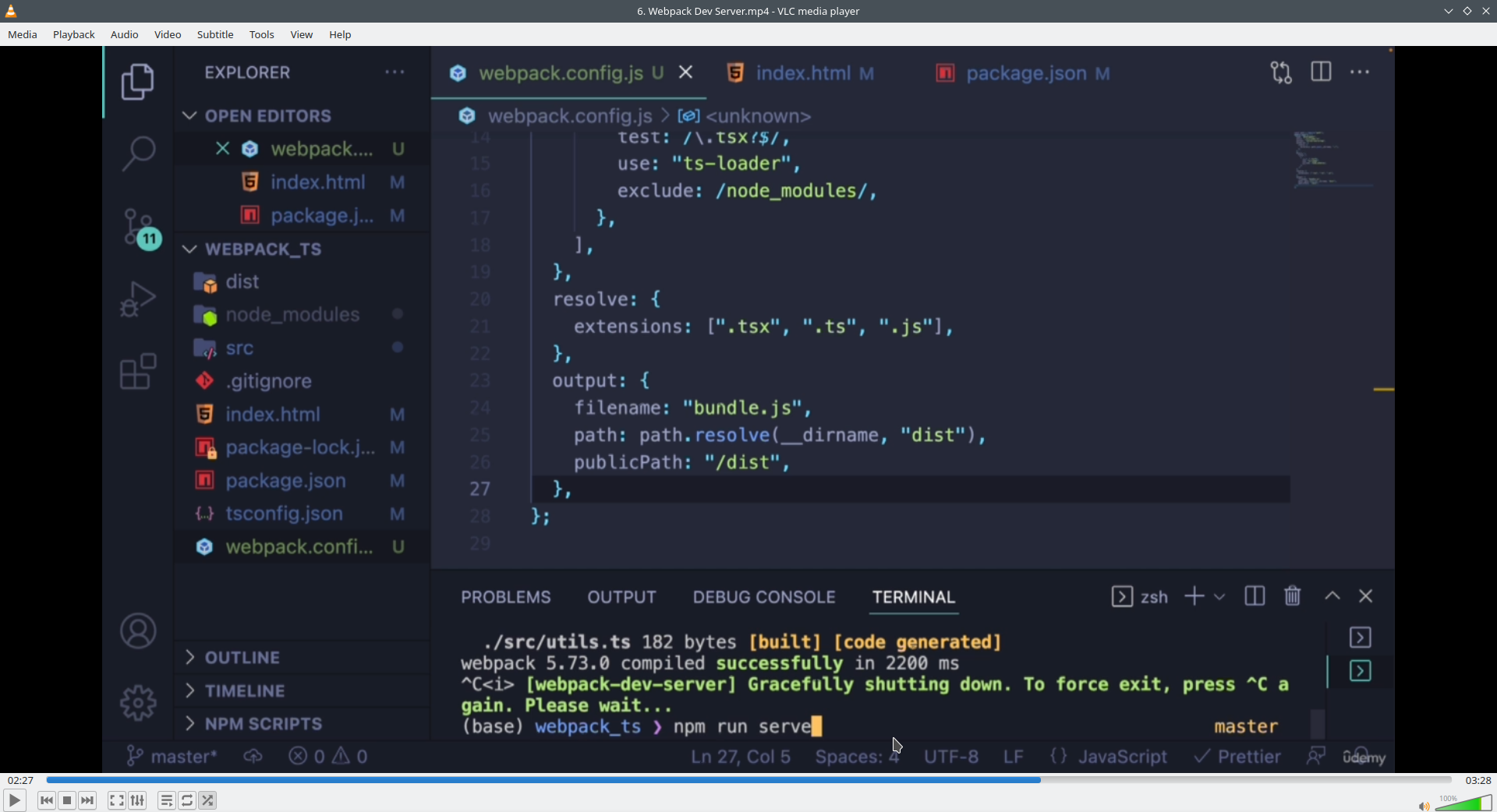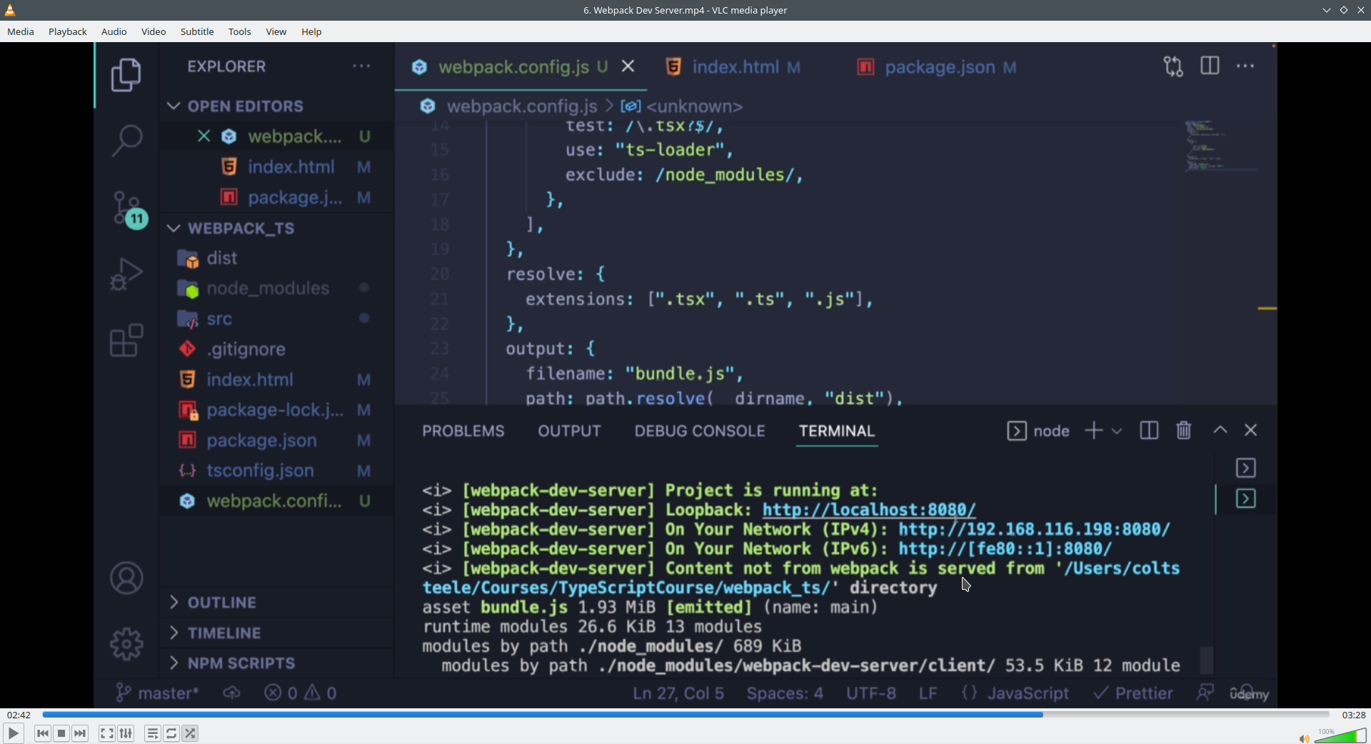 1. What's The Point Of Webpack.mp4 2. Setting Up a Project.mp4 3. Installing Webpack Dependencies.mp4 4. Basic Webpack Config.mp4 5. Adding Source Maps.mp4 6. Webpack Dev Server.mp4 7. Production Configuration.mp4