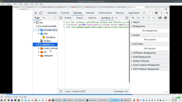 Start using development and production mode, now will add Webpack development server. In development mode we can see source of Bundle.js