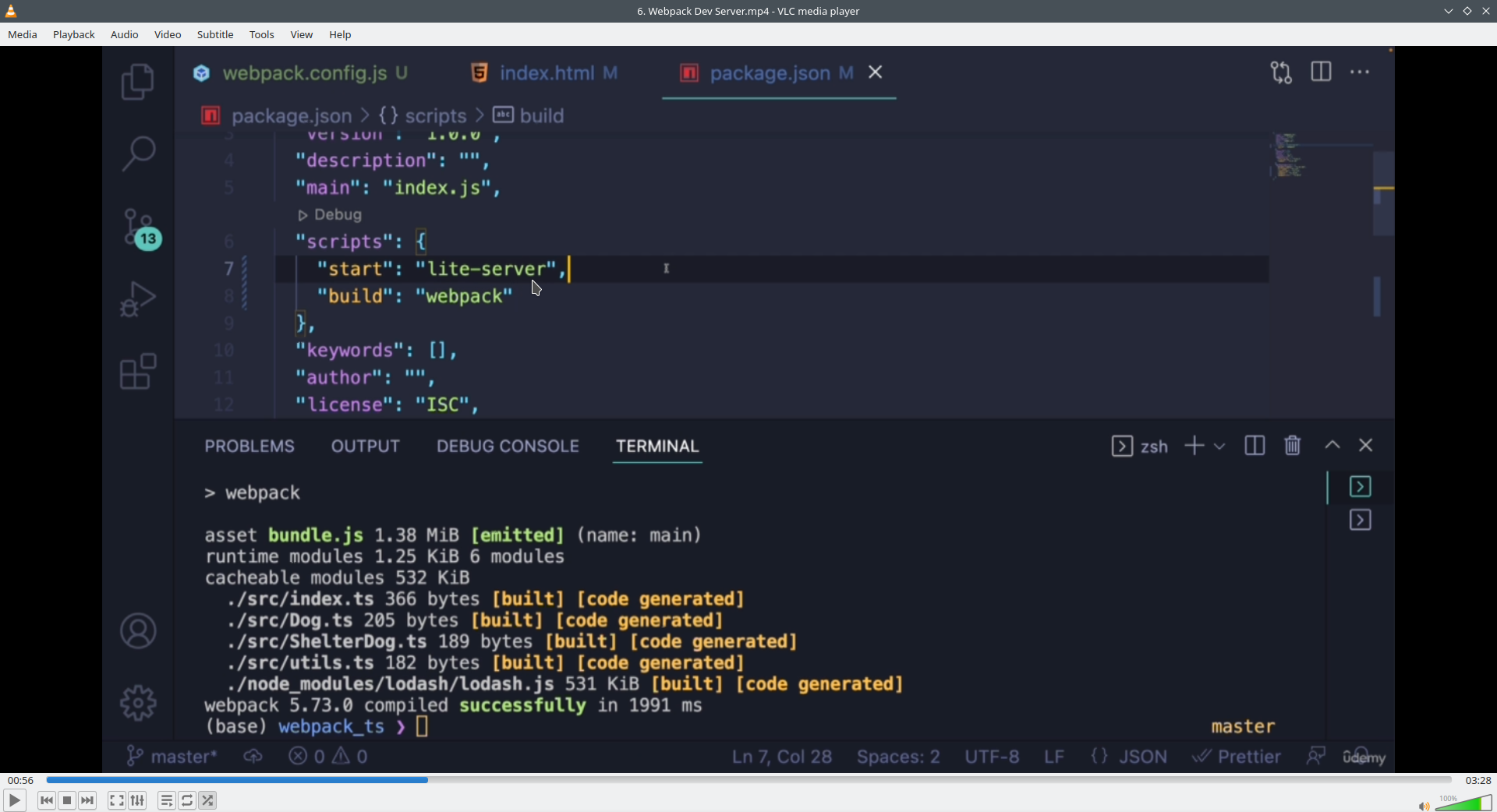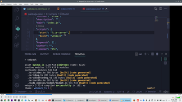 Start local installation "webpack-dev-server". Replace "lite-server" to "webpack serve" (working in memory only), mode of Webpack development server.