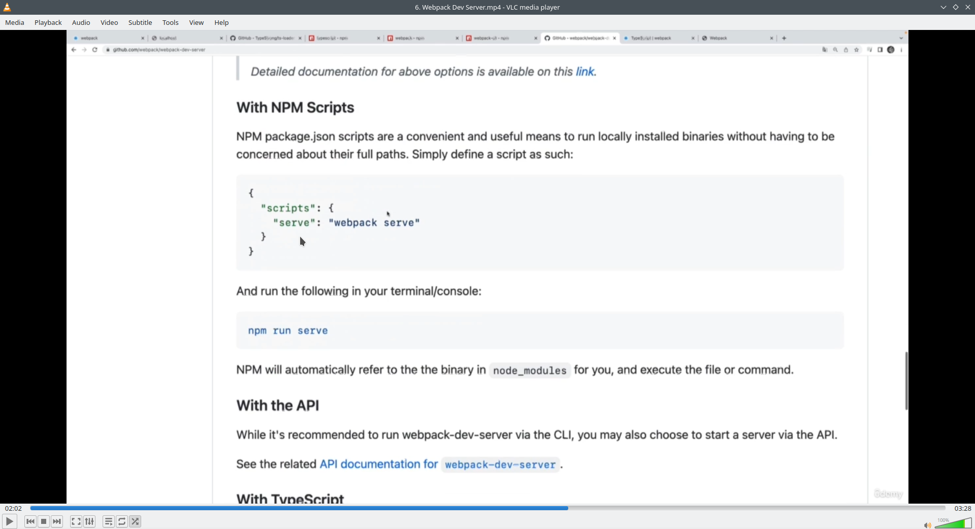 And now "npm run serve" will start Webpack development server with parameter "server, "npm run build" without it https://webpack.js.org/api/cli/#commands