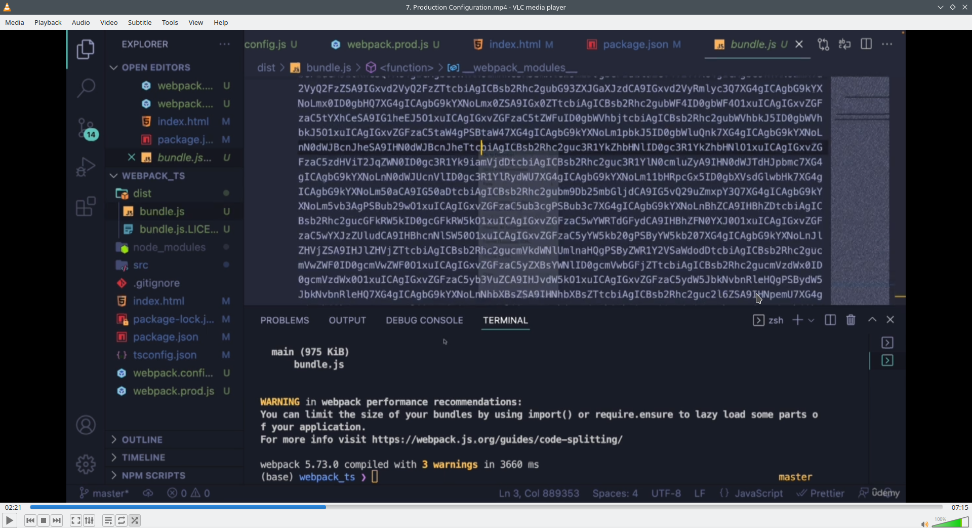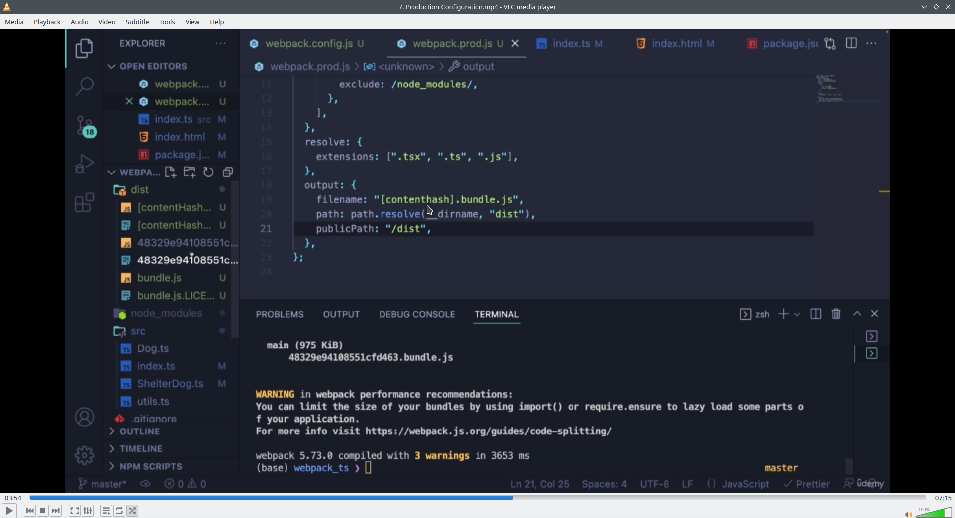 Create production copy of webpack config "webpack.prod.js" and look to result on disk.