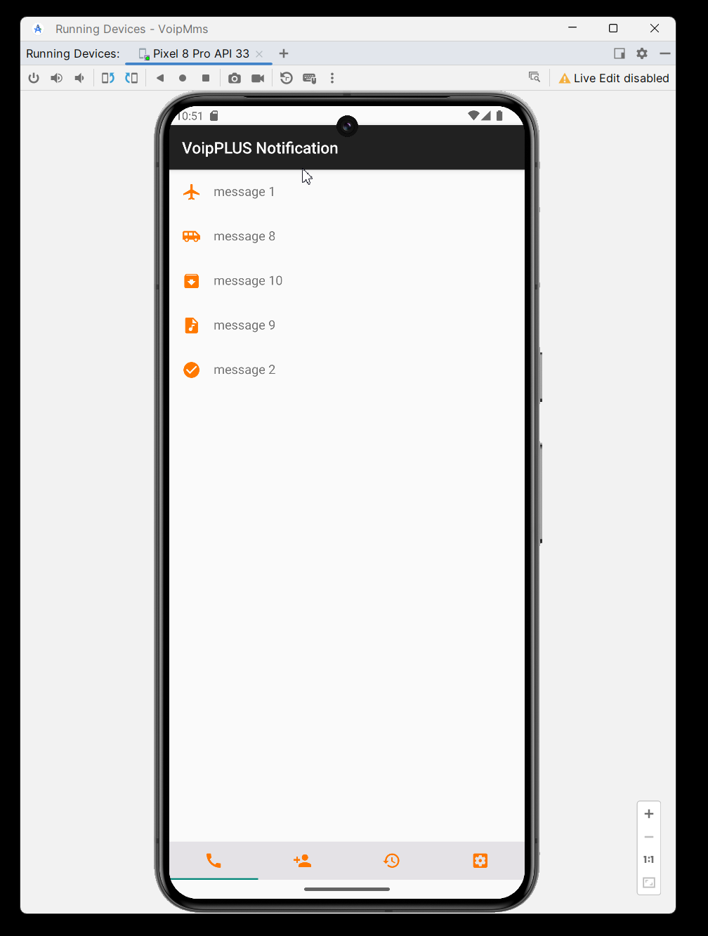 - Main activity - using RandomMessageItemAdapter to generate random text and random cons from predefined icon set