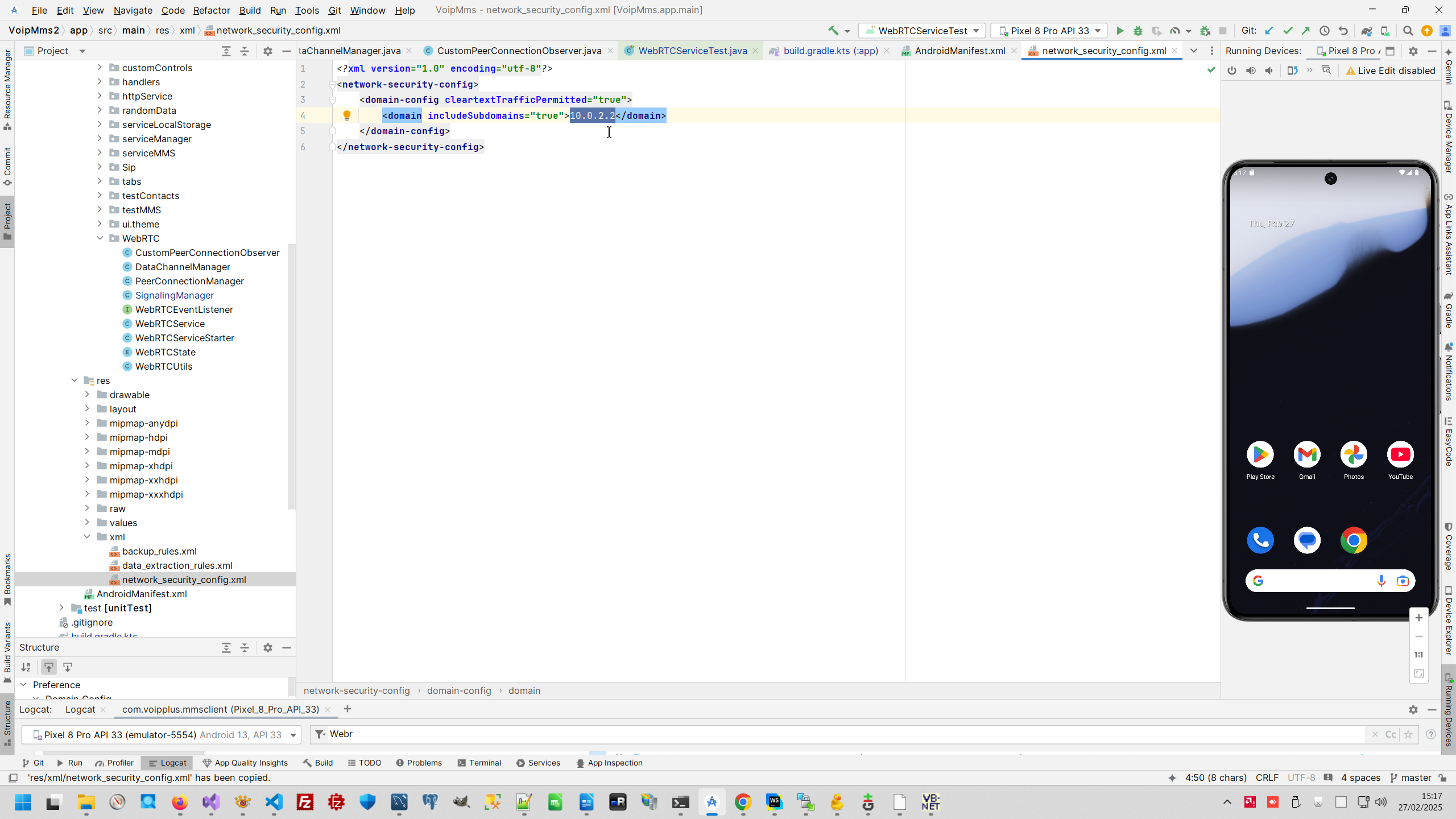 4. Prepare Android integration test (Gradle, Manifest, network security policy).